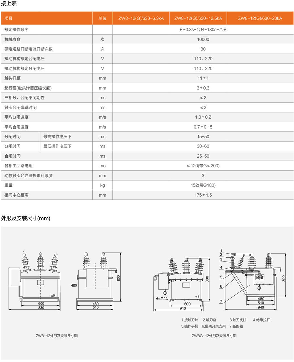 ZW8- 12G是由ZW8- 12断路器与隔离刀组合而成的,称为组合断路器,可作为分段开关使用。